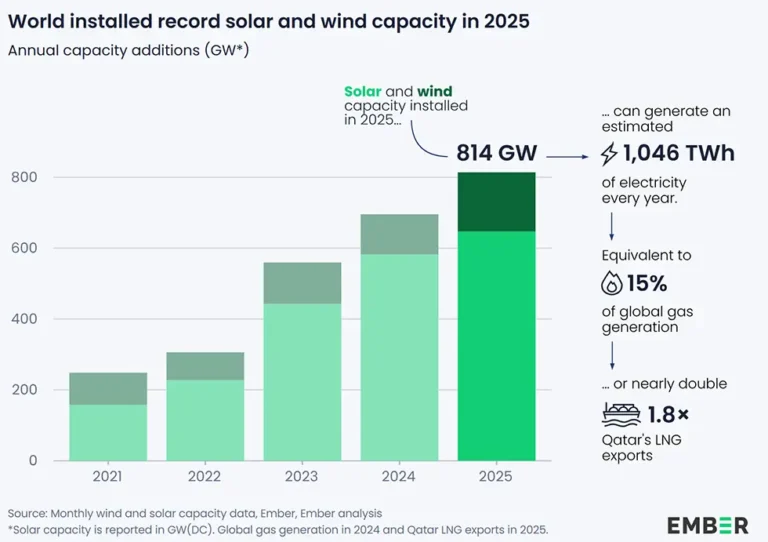[KI-Analyse] Die im Jahr 2025 neu installierte Wind- und Solarleistung von 814 Gigawatt kann