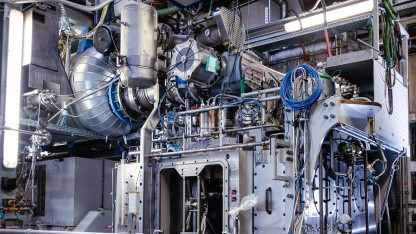 Der Einzylinder-Motor mit 560 kW, der Wasserstoff verbrennt, wurde zusammen mit der TU München am MAN-Standort in Augsbu...
