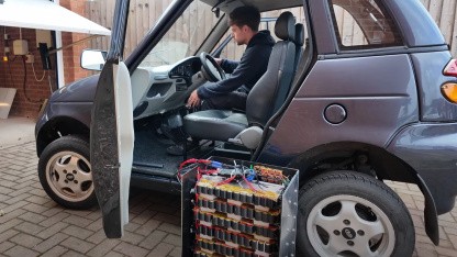 Ein britischer Hobbybastler baute einen alten Elektro-Kleinstwagen so um, dass er mit Lithiumzellen aus Einweg-E-Zigaret...