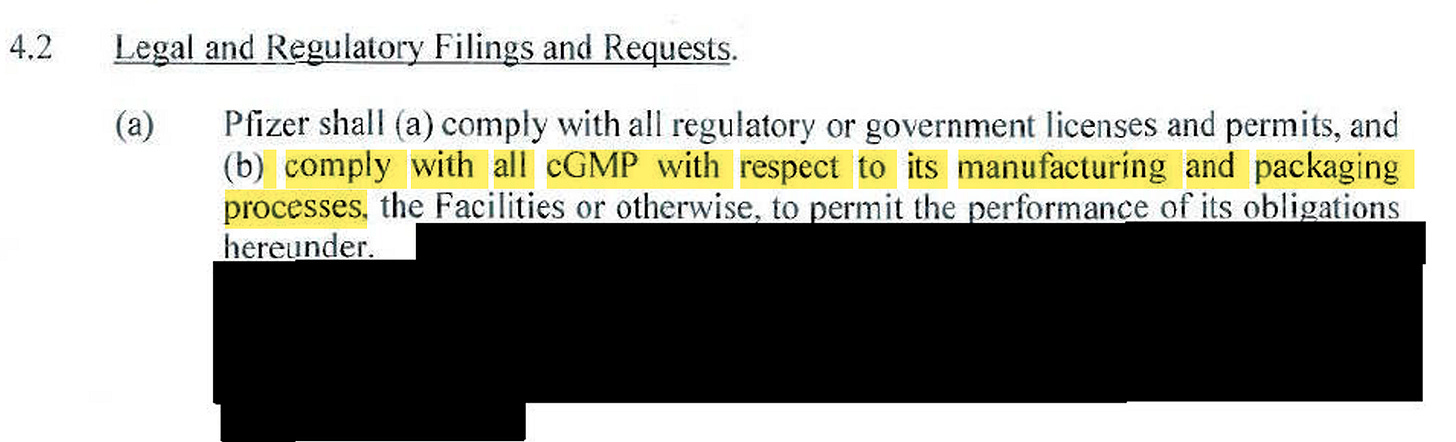 Pfizer hat das Produkt gemäß den Materialspezifikationen und den cGMP-Richtlinien herzustellen.
