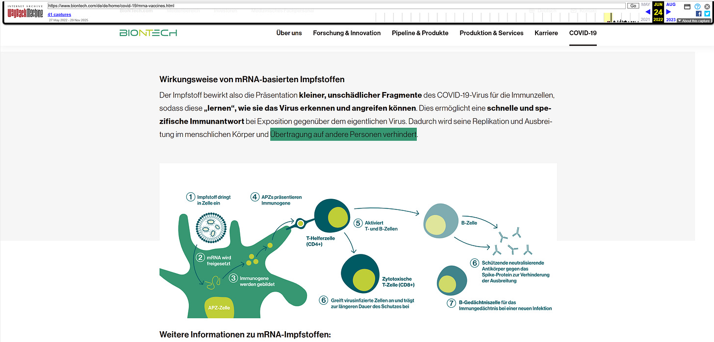 Die Frage ist nicht ganz korrekt. BioNTech hat tatsächlich, entgegen der tatsächlichen Datenlage aus den Studien, mit Übertragungsschutz auf seiner Webseite geworben und wurde diesbezüglich nie belangt.
