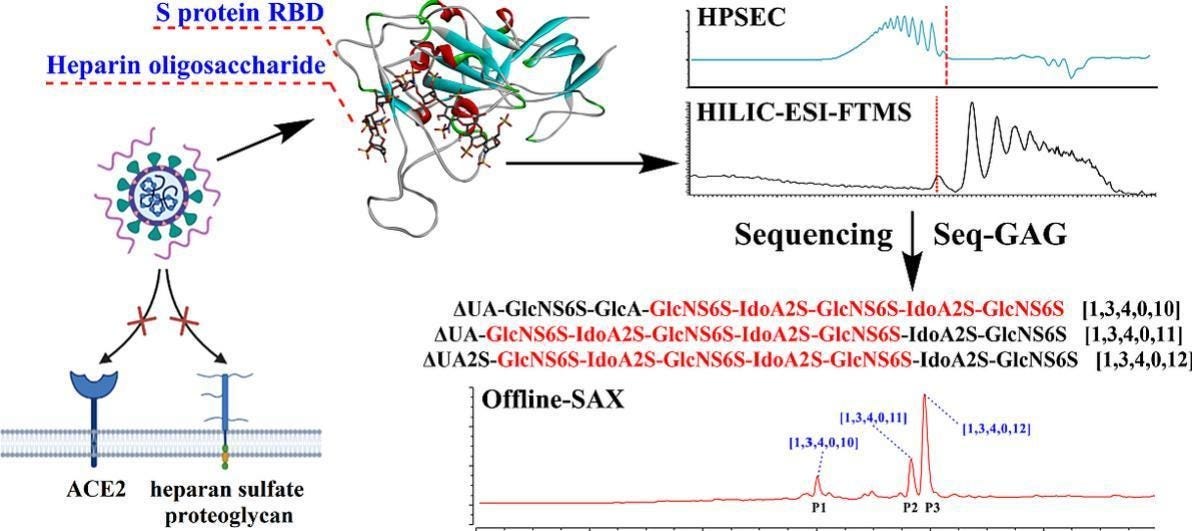 “Es zeigte sich, dass ein Heparin-Oligosaccharid mit spezifischer Struktur eine hohe Affinität zum RBD des S-Proteins der Omicron-Sublinie BA.4/BA.5/BA.5.2 aufweist. Die Sequenz mit starker Bindungsfähigkeit im Oktasaccharid lautete [ΔUA2S-GlcNS6S-IdoA2S-GlcNS6S-IdoA2S-GlcNS6S -IdoA2S-GlcNS6S], mit einer Affinitätsenergie von −6,8 kcal/mol, wobei sich die Kernpentasaccharidsequenz GlcNS6S-IdoA2S-GlcNS6S-IdoA2S-GlcNS6S als gemeinsame Bindungseinheit herausstellte.”