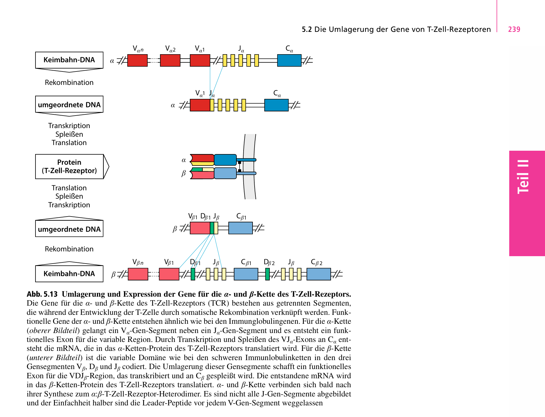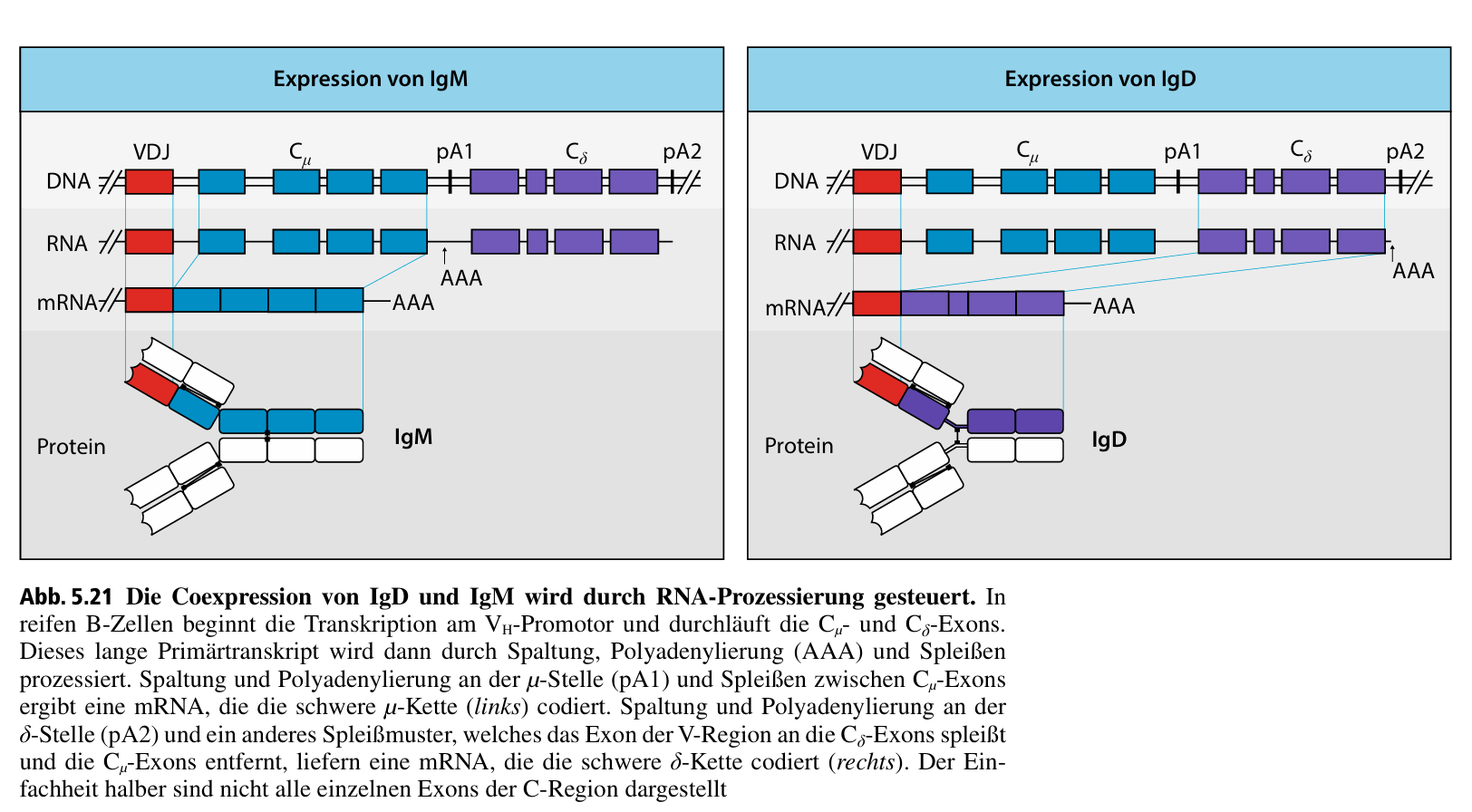 Bei B-Zellen läuft es analog, da verweist das Lehrbuch im Bild auf Seite 247 nur noch auf VDJ, lies bei T-Zellen, wie das geht.