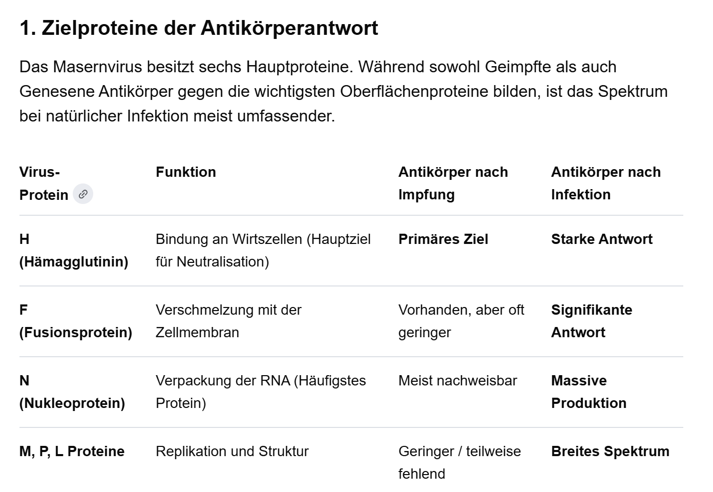 Die Masernimpfung bildet vor allem H-spezifische Antikörper.