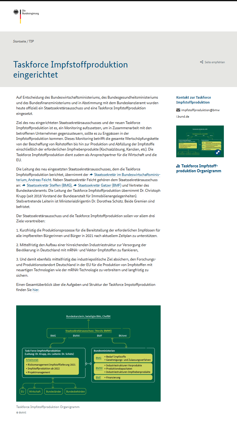 Taskforce Impfstoffproduktion – Impressum https://web.archive.org/web/20211216154628/https://www.taskforce-impfstoffproduktion.de/TIP/Navigation/DE/Impressum/impressum.html