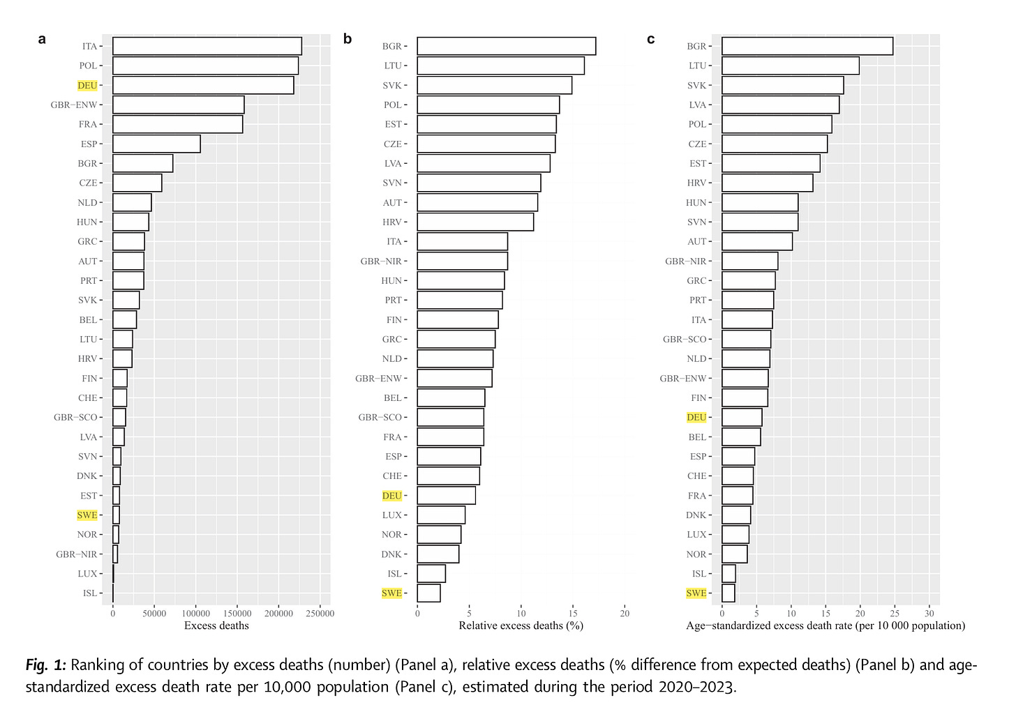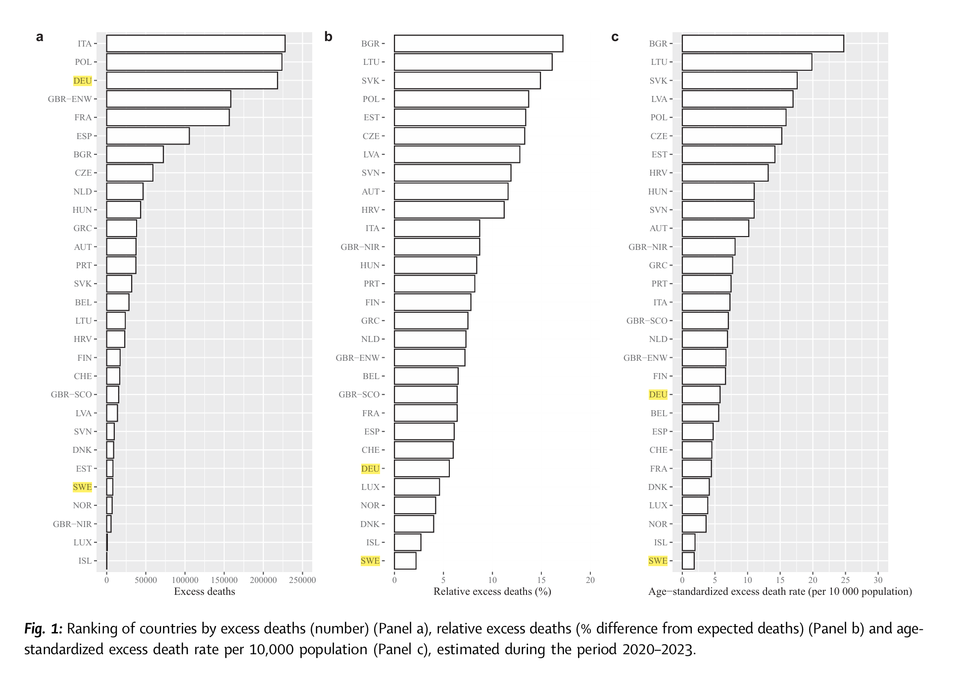 Pizzato M, Gerli AG, La Vecchia C, Alicandro G. Impact of COVID-19 on total excess mortality and geographic disparities in Europe, 2020-2023: a spatio-temporal analysis. Lancet Reg Health Eur. 2024 Jul 3;44:100996. doi: 10.1016/j.lanepe.2024.100996. Erratum in: Lancet Reg Health Eur. 2024 Oct 30;47:101117. doi: 10.1016/j.lanepe.2024.101117. PMID: 39410937; PMCID: PMC11473197. https://pubmed.ncbi.nlm.nih.gov/39410937/