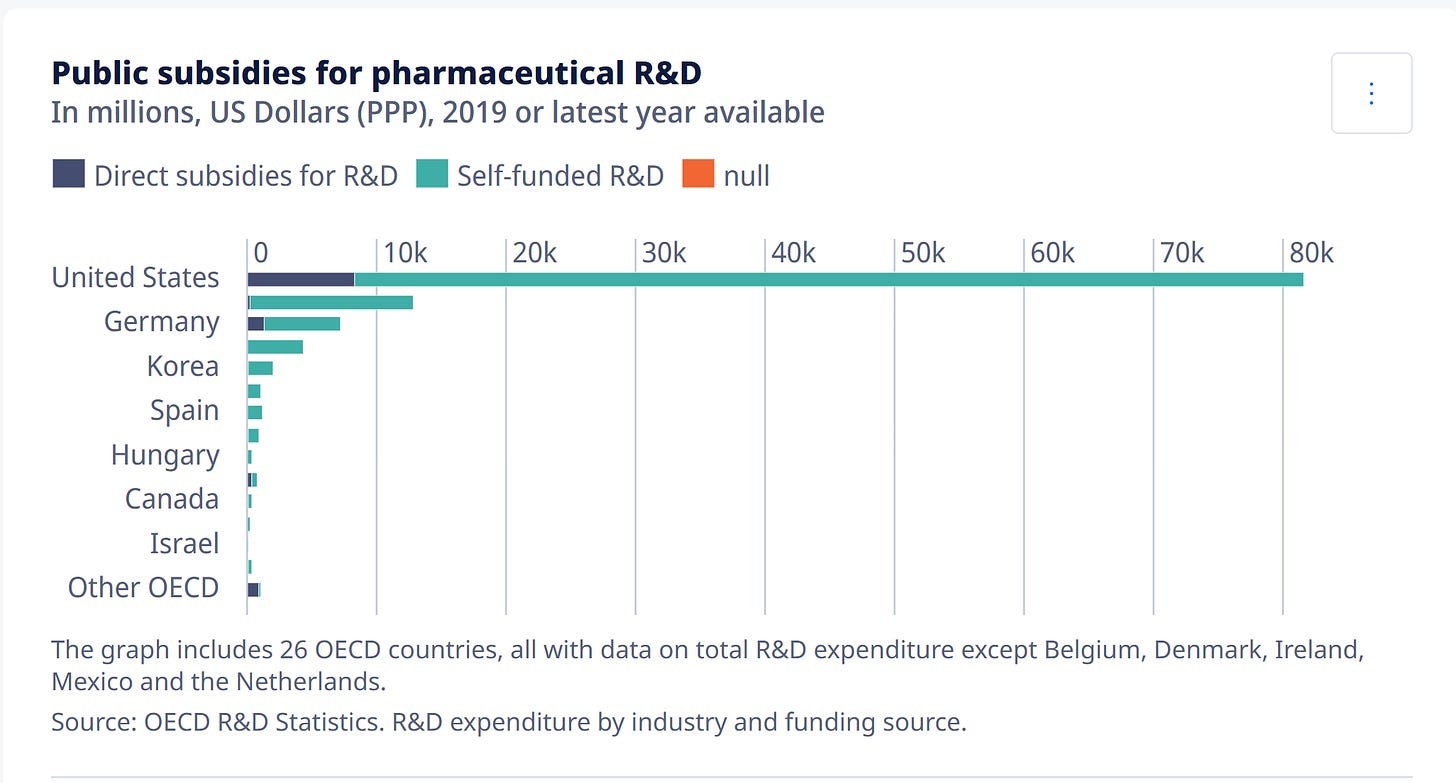 Zudem wird Research and Development (R&D) staatlich gefördert. Kein Wunder, dass die Pharma die Kohle mitnimmt.