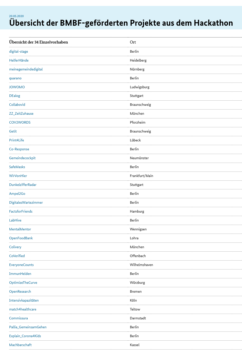 #WirVsVirus: Die 20 besten Projekte | Digitale Hauptstadtregion. (n.d.). https://www.digitale-hauptstadtregion.de/wirvsvirus-die-20-besten-projekte/