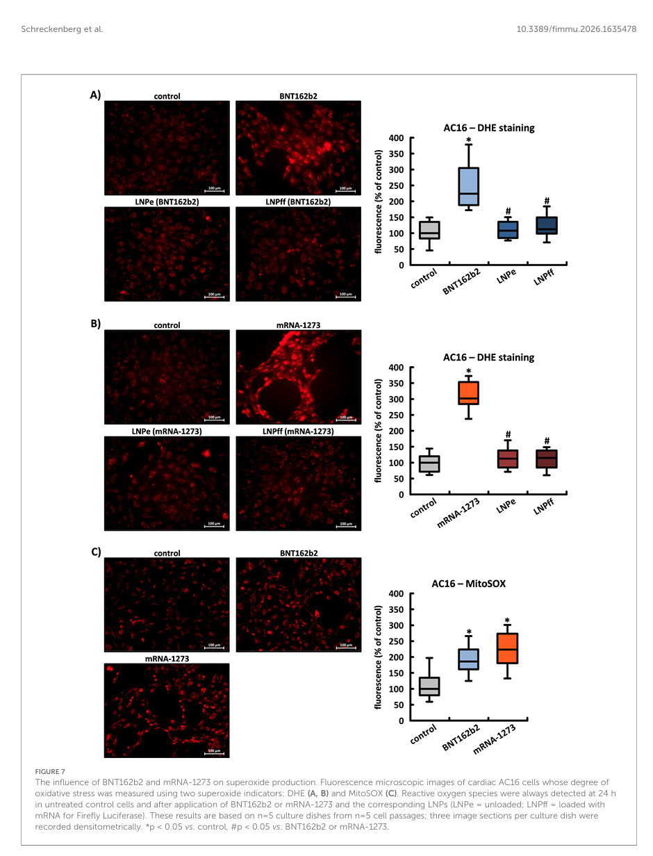 Schreckenberg, R., Woitasky, N., Itani, N., Czech, L., Windhorst, A. C., Juchem, M., Bär, C., Thum, T., Ferdinandy, P., & Schulz, R. (2026). mRNA-based SARS-CoV-2 vaccines: intracellular processing and aggregation of the encoded spike protein as a mechanistic contributor to cardiac cellular stress. Frontiers in Immunology, 17. https://doi.org/10.3389/fimmu.2026.1635478 https://www.frontiersin.org/journals/immunology/articles/10.3389/fimmu.2026.1635478/full?