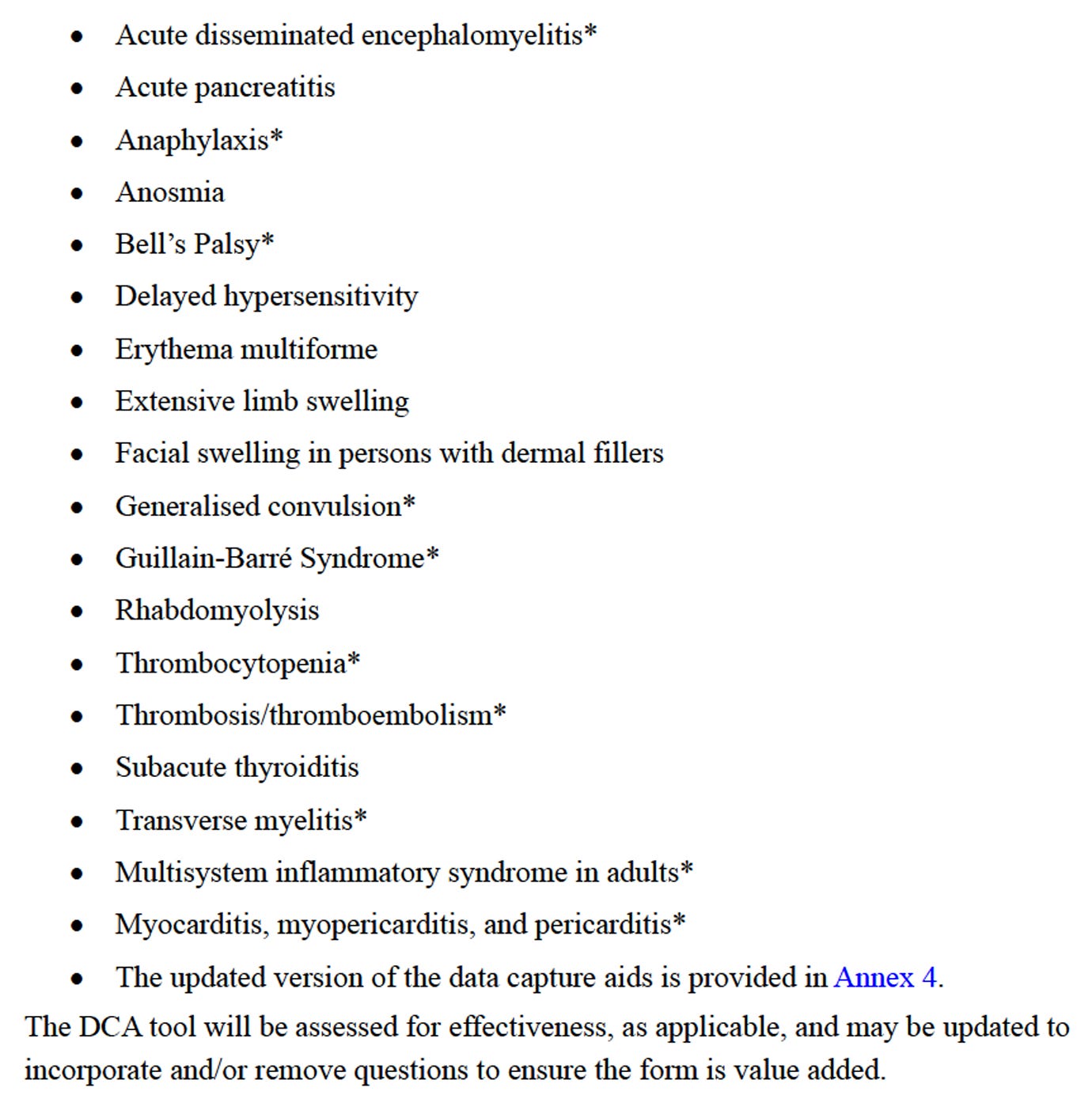 Für die adverse effects auf special interest, gibt es im Anhang Fragebögen: