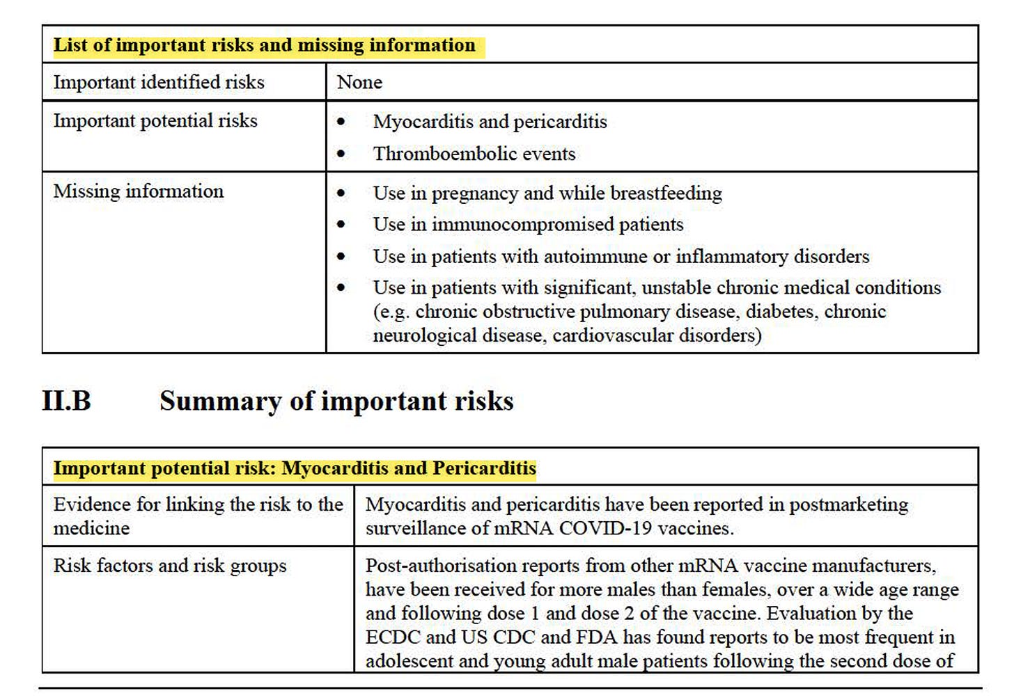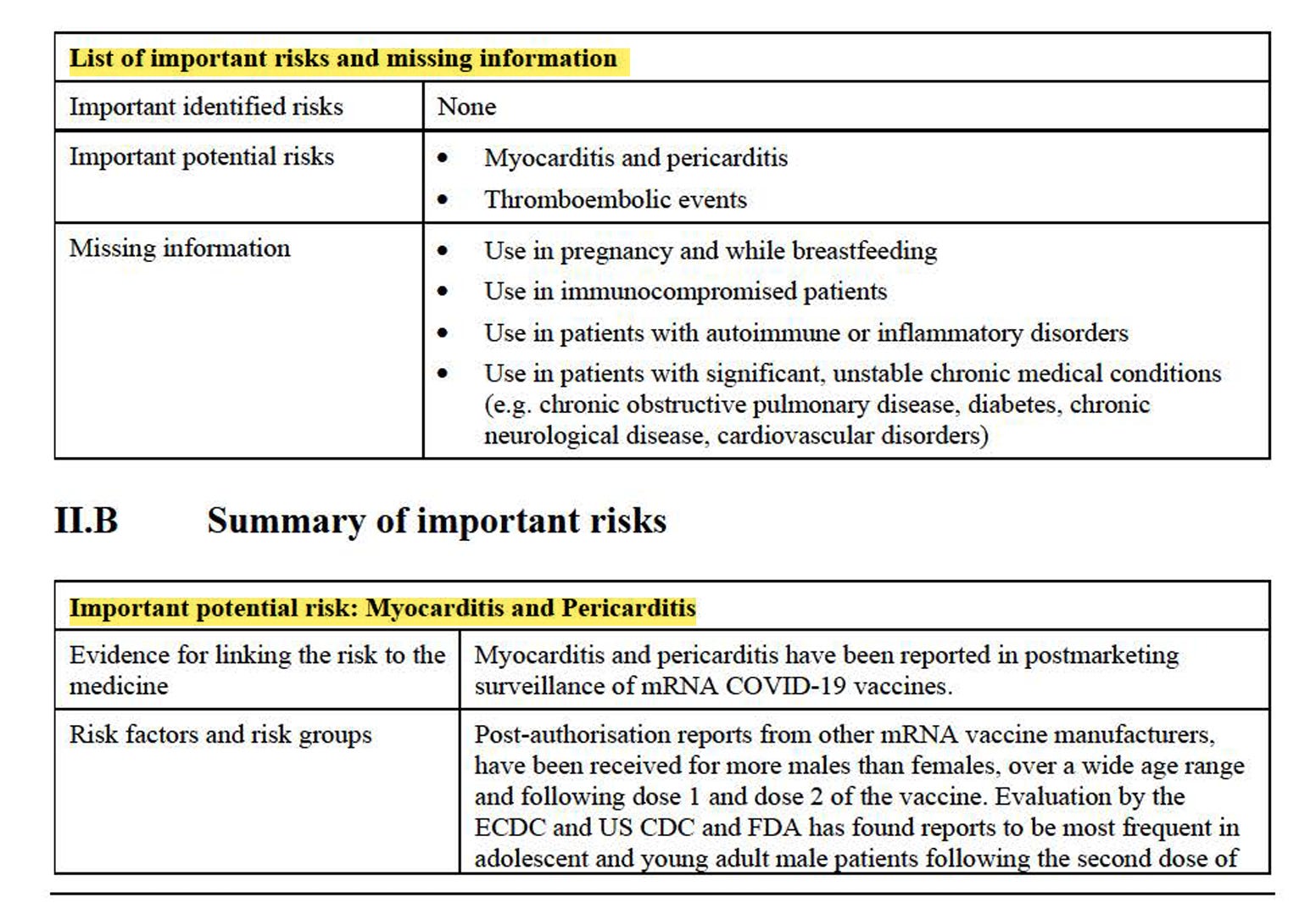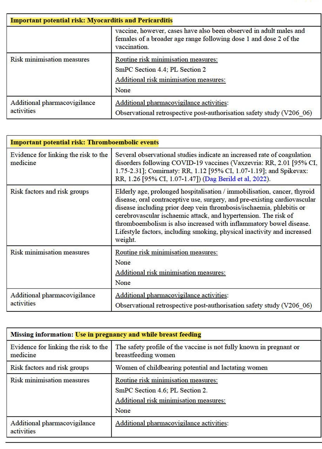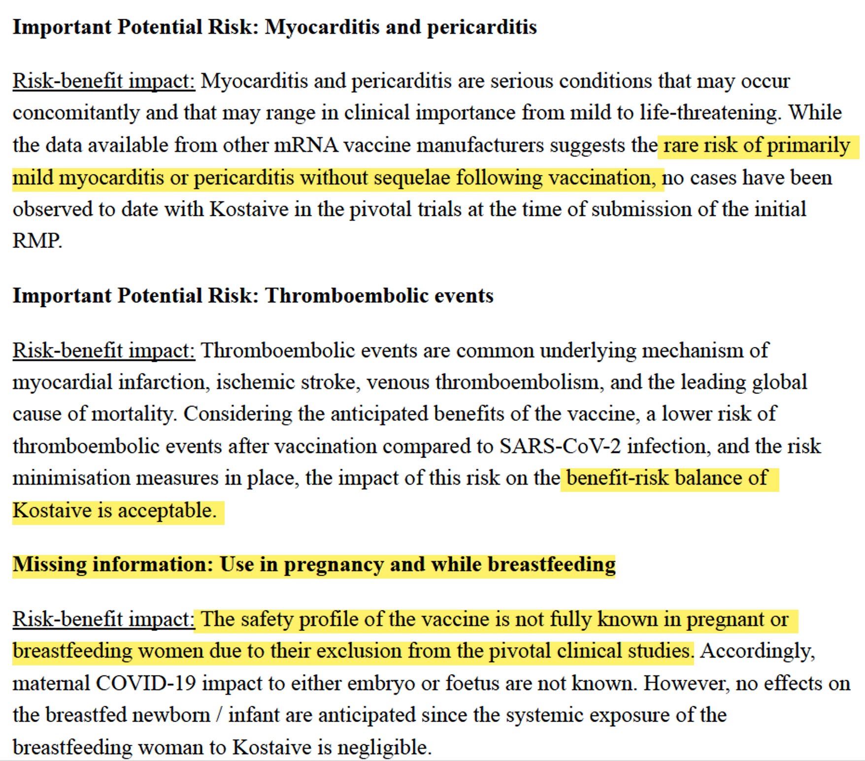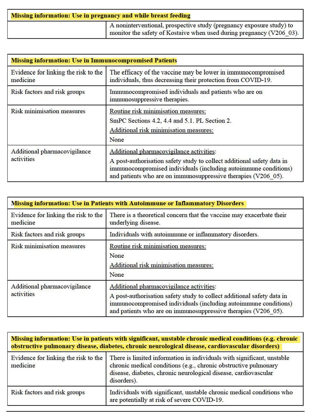 Die Liste wichtiger Risiken und fehlender Informationen ist zumindest recht übersichtlich gestaltet. Eigentlich dürfen nur total gesunde Menschen ohne Risiken das Produkt bekommen, exakt jene, die es nicht brauchen.